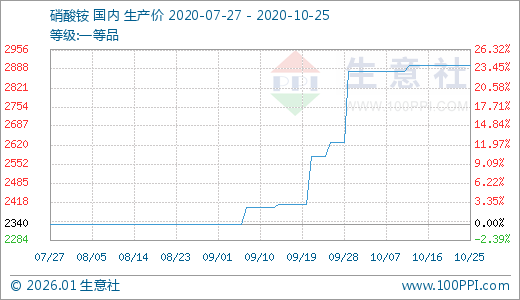 10月25日硝酸铵2900.00元/吨 30天上涨10.27%