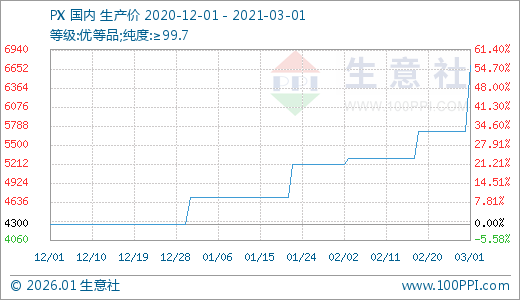 03月01日PX价格6700.00元/吨 5天上涨17.54%