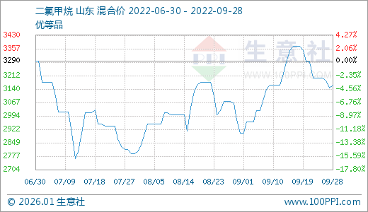 09月28日二氯甲烷3160.00元/吨 60天上涨13.26%
