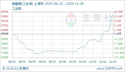 11月20日碳酸锂95266.67元/吨 5天上涨11.16%
