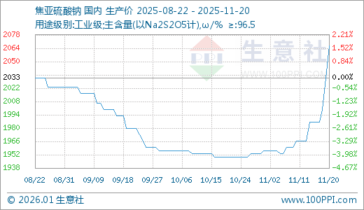 11月20日焦亚硫酸钠2066.67元/吨 5天上涨4.03%