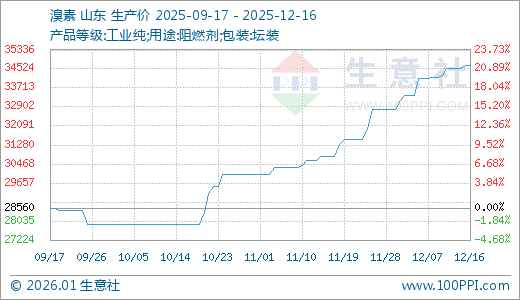 12月16日溴素34660.00元/吨 30天上涨12.53%