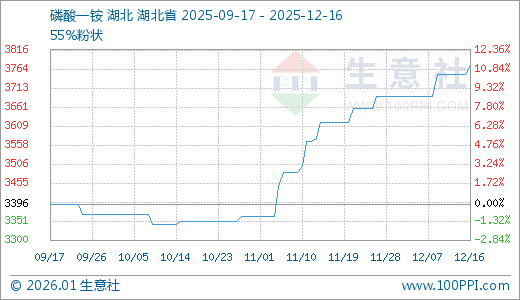 12月16日磷酸一铵3773.33元/吨 60天上涨12.64%