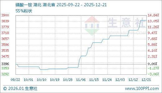 12月21日磷酸一铵3850.00元/吨 60天上涨14.93%