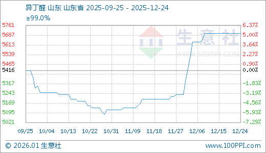 12月24日异丁醛5700.00元/吨 60天上涨11.04%