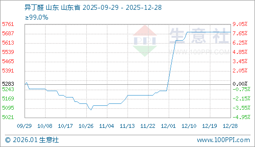 12月28日异丁醛5700.00元/吨 60天上涨11.40%