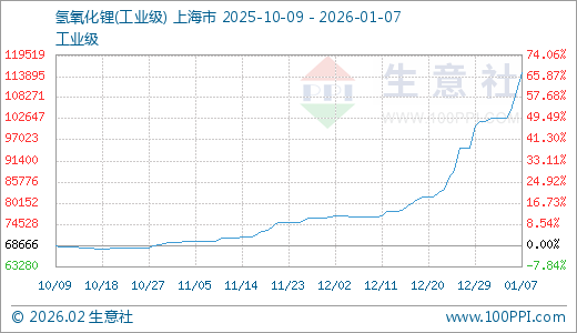 01月07日氢氧化锂114833.33元/吨 5天上涨11.67%