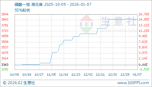 01月07日磷酸一铵3850.00元/吨 60天上涨10.53%
