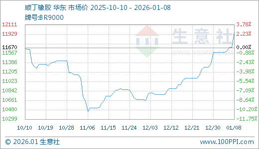 01月08日顺丁橡胶11960.00元/吨 5天上涨3.28%