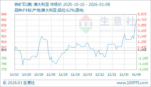 01月08日铁矿石842.78元/吨 5天上涨3.14%