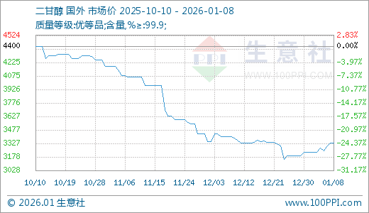 01月08日二甘醇3333.33元/吨 5天上涨3.09%