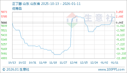 01月11日正丁醇5773.33元/吨 60天上涨11.74%