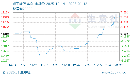 01月12日顺丁橡胶11980.00元/吨 30天上涨10.01%
