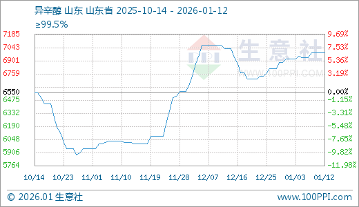 01月12日异辛醇6983.33元/吨 60天上涨16.07%