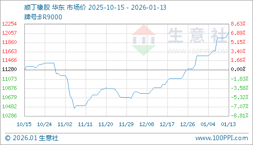 01月13日顺丁橡胶12090.00元/吨 30天上涨11.02%