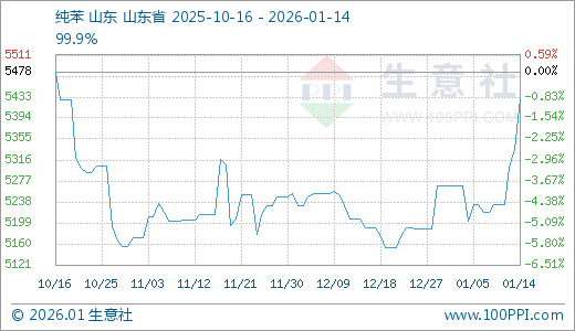 01月14日纯苯5430.00元/吨 5天上涨3.76%