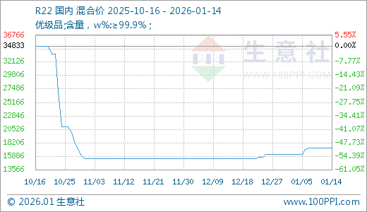 01月14日R22价格17333.33元/吨 10天上涨6.67%