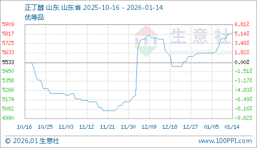 01月14日正丁醇5833.33元/吨 60天上涨13.27%