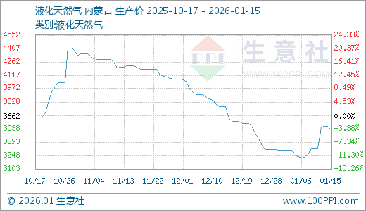 01月15日液化天然气3530.00元/吨 5天上涨6.33%