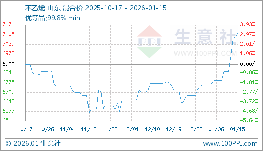 01月15日苯乙烯7116.00元/吨 5天上涨3.88%