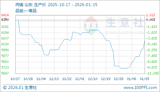 01月15日丙烯6084.33元/吨 5天上涨3.63%