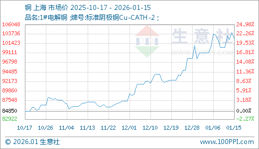 01月15日铜102551.67元/吨 30天上涨11.65%