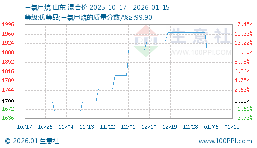 01月15日三氯甲烷1900.00元/吨 60天上涨11.76%