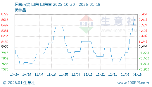 01月18日环氧丙烷8633.33元/吨 5天上涨3.60%
