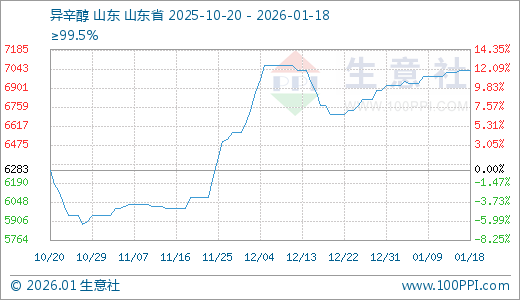 01月18日异辛醇7033.33元/吨 60天上涨15.62%