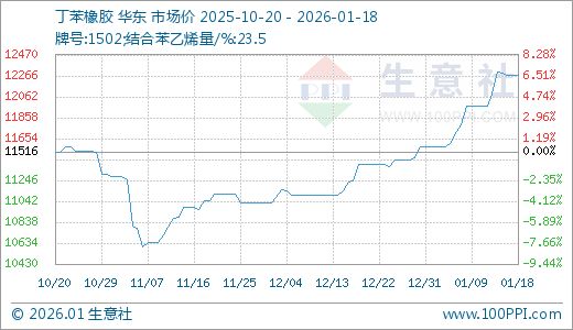 01月18日丁苯橡胶12266.67元/吨 60天上涨11.01%