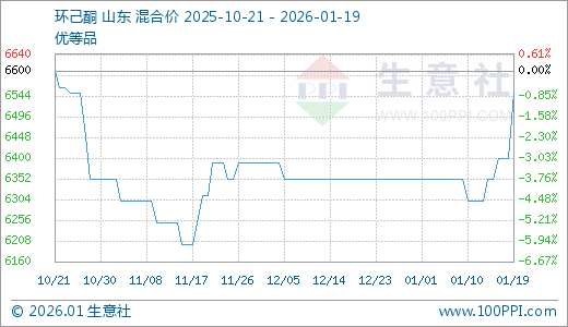 01月19日环己酮6550.00元/吨 5天上涨3.15%