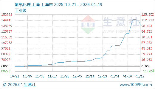 01月19日氢氧化锂138000.00元/吨 10天上涨12.20%