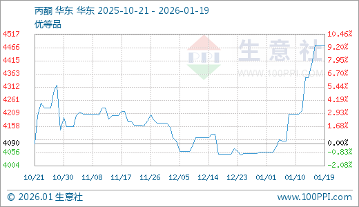 01月19日丙酮4475.00元/吨 10天上涨6.42%