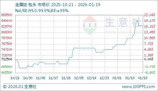 01月19日金属钕832500.00元/吨 10天上涨5.71%