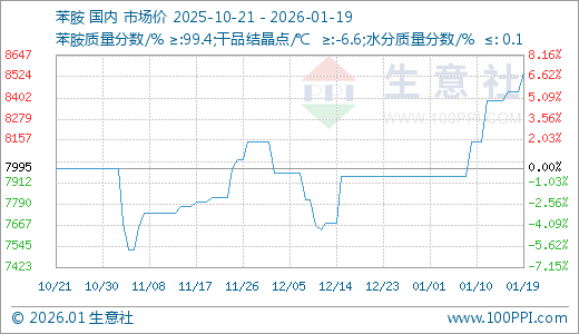 01月19日苯胺8545.00元/吨 15天上涨7.55%