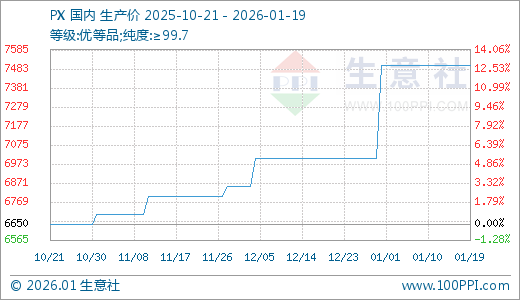 01月19日PX价格7500.00元/吨 60天上涨10.29%