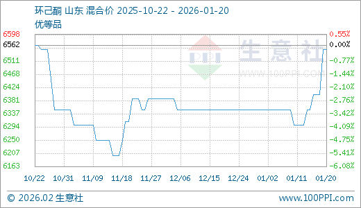 01月20日环己酮6550.00元/吨 5天上涨3.15%