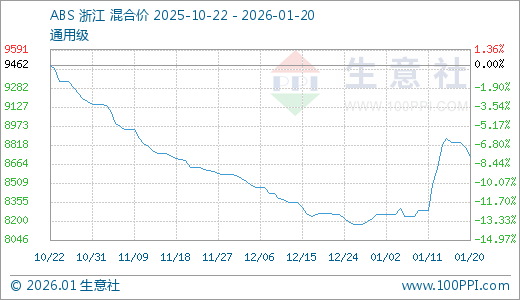 据生意社监测,ABS 01月20日最新价格8725.00元/吨,最近10天上涨5.28%。