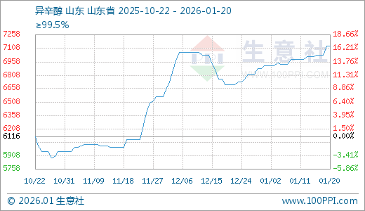 01月20日异辛醇7133.33元/吨 60天上涨17.26%