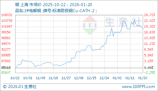 01月20日铜100660.00元/吨 60天上涨17.19%