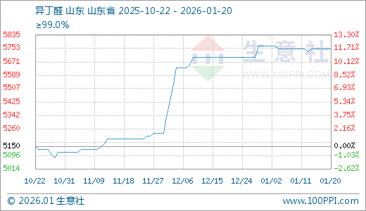 01月20日异丁醛5750.00元/吨 60天上涨10.58%