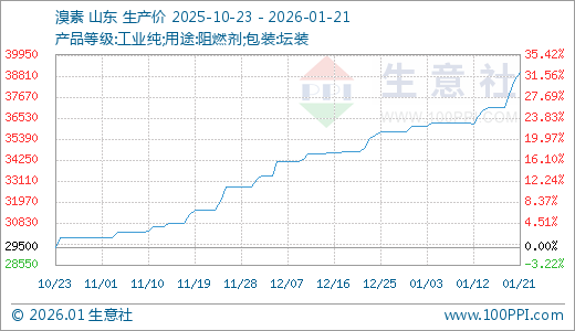01月21日溴素39000.00元/吨 5天上涨5.12%