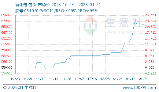 01月21日氧化镨670000.00万元/吨 10天上涨7.63%
