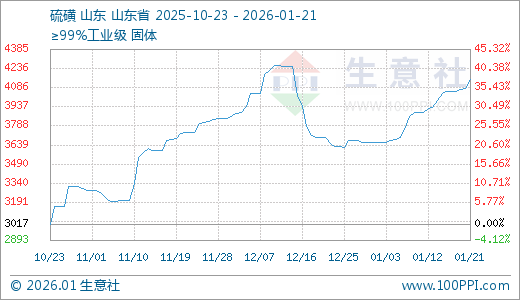 01月21日硫磺4150.00元/吨 10天上涨6.59%