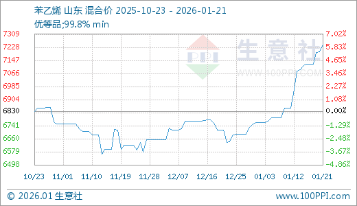 01月21日苯乙烯7242.00元/吨 10天上涨5.72%