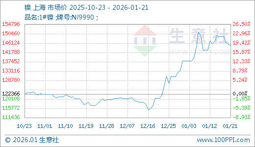 01月21日镍145100.00元/吨 30天上涨18.98%