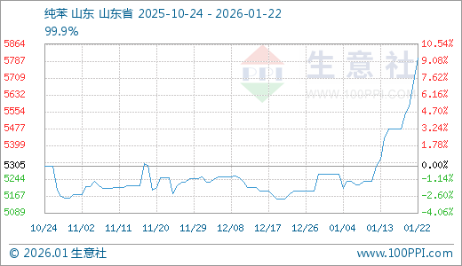01月22日纯苯5800.00元/吨 5天上涨5.90%
