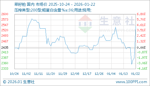 01月22日菜籽粕2542.00元/吨 5天上涨4.27%