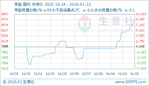 01月22日苯胺8745.00元/吨 5天上涨3.64%