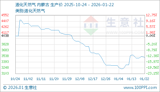 据生意社监测,液化天然气01月22日最新价格3500.00元/吨,最近15天上涨8.36%。